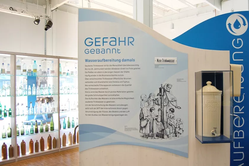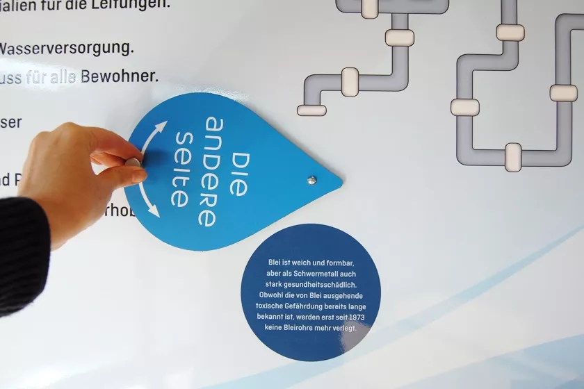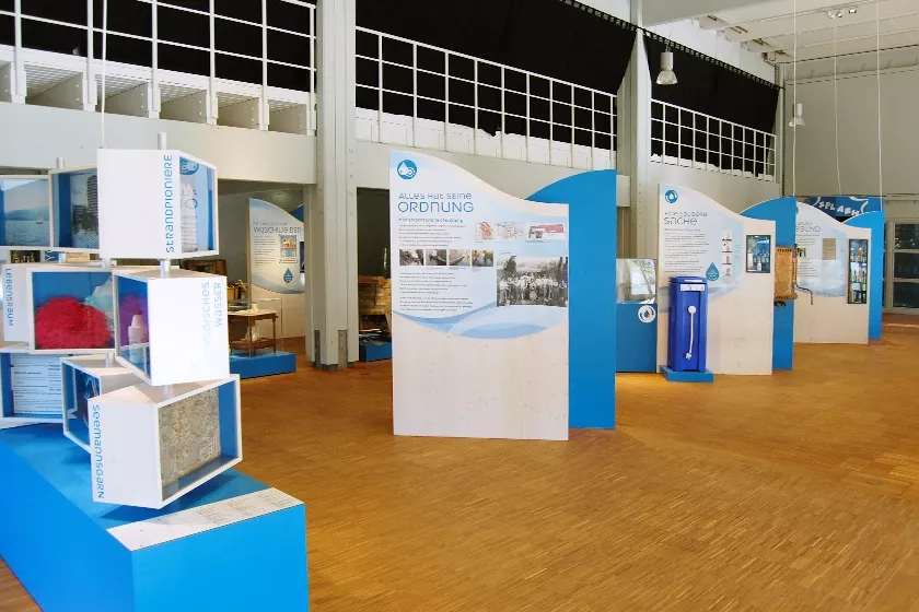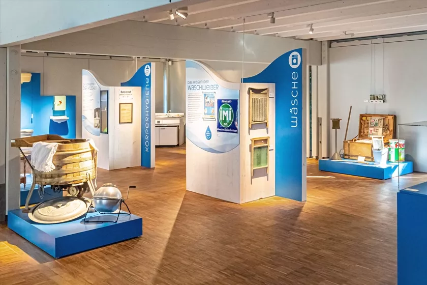 Wanderausstellung für 4 Freilichtmuseen zum Thema Wasser. Anhand von Stationen mit Exponaten und interaktiven Elementen kann man die Bedeutung des Wassers im täglichen Leben entdecken, damals und heute.